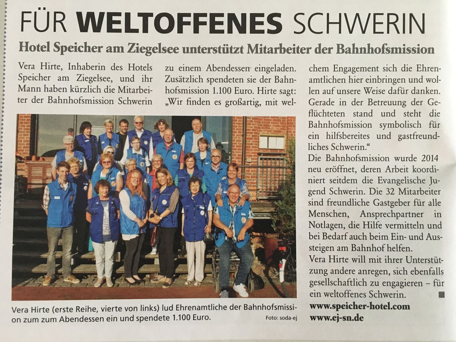 08-2017: Hotel Speicher unterstützt Mitarbeiter der Bahnhofsmission