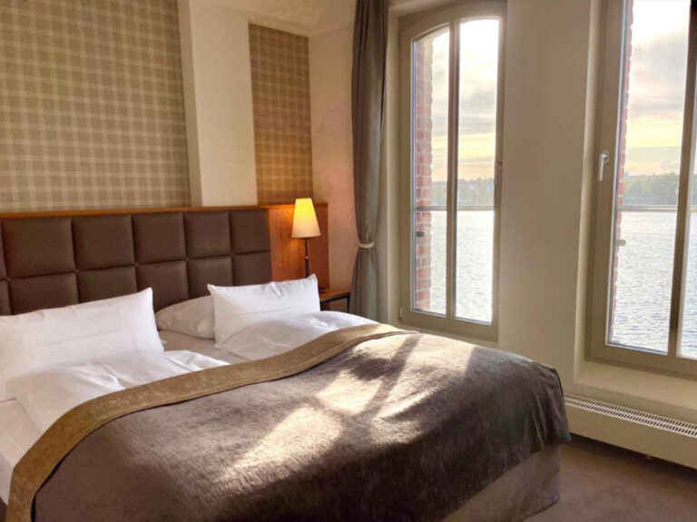 inkl. Frühstück und "Speichersinklusive" Doppelzimmer zur Seeseite oder mit Altstadtblick an der Südgiebelseite, 180er Bett mit getrennten Matratzen, Abb. Zimmer 105 ist ein Beispiel